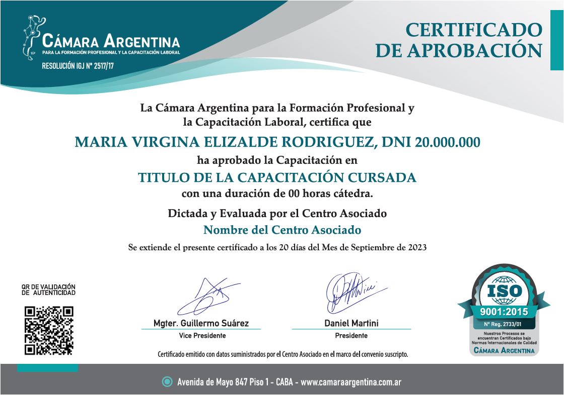- Certificado por: Cámara Argentina & OIEP